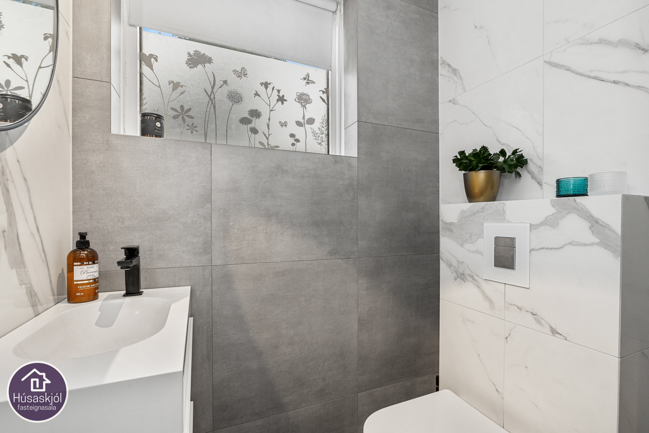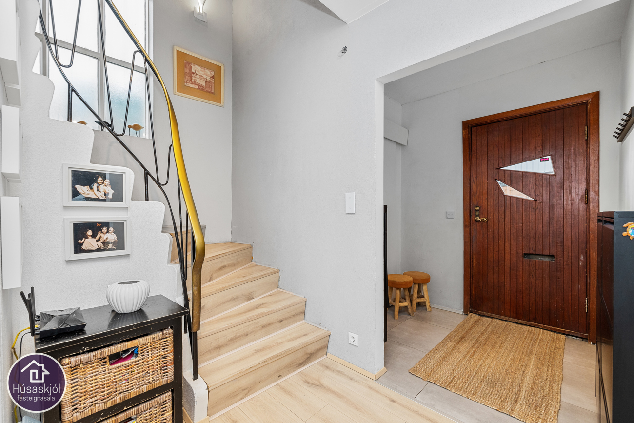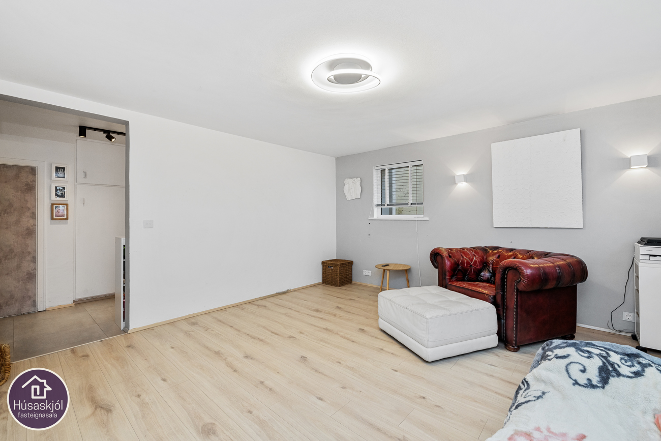 Kjallari: Hann er á fastanúmeri og var áður aukaíbúð og eru allar lagnir til staðar til að breyta aftur. Kjallarinn er með sérinngang en einnig er innangengt í hann frá aðalíbúð. Baðherbergi er fokhelt og verður afhent þannig. Svefnherbergi er með harðparketi, geymsla undir stiga. Stofan er með harðparketi. Herbergi þar sem áður var eldhús, allar lagnir til staðar. Gólfihiti í öllum rýmum í kjallara