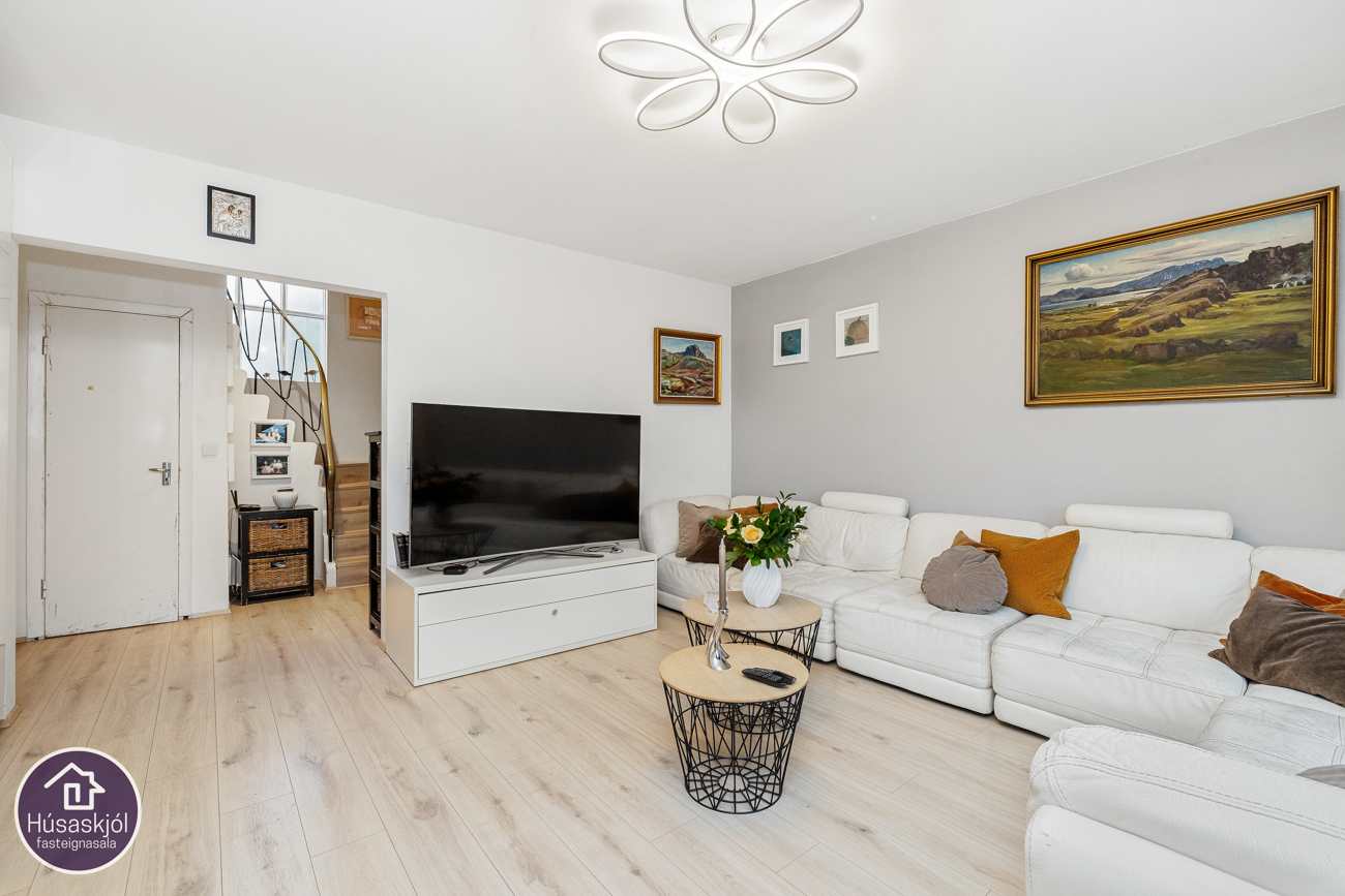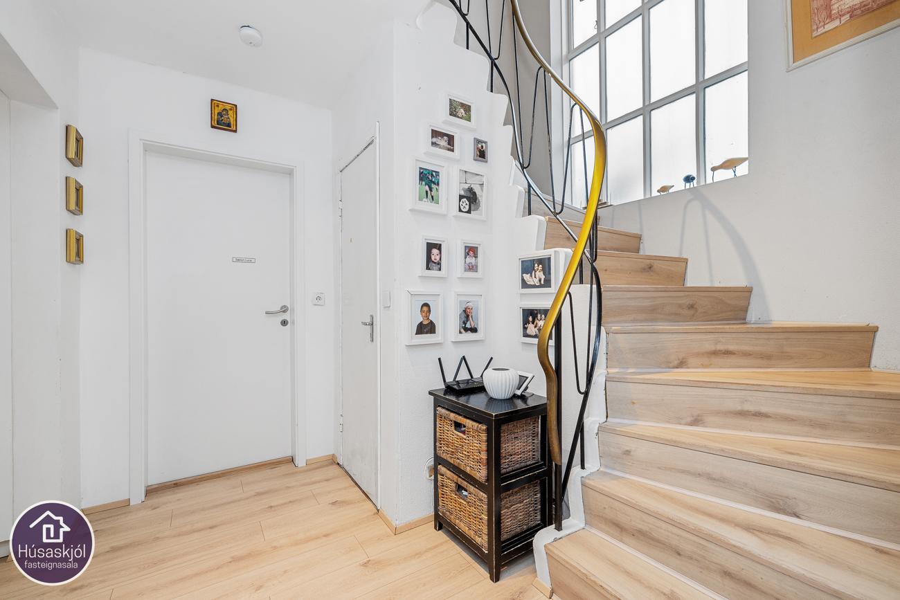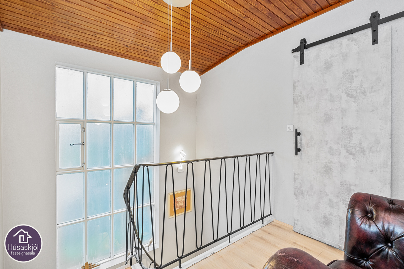 Kjallari: Hann er á fastanúmeri og var áður aukaíbúð og eru allar lagnir til staðar til að breyta aftur. Kjallarinn er með sérinngang en einnig er innangengt í hann frá aðalíbúð. Baðherbergi er fokhelt og verður afhent þannig. Svefnherbergi er með harðparketi, geymsla undir stiga. Stofan er með harðparketi. Herbergi þar sem áður var eldhús, allar lagnir til staðar. Gólfihiti í öllum rýmum í kjallara