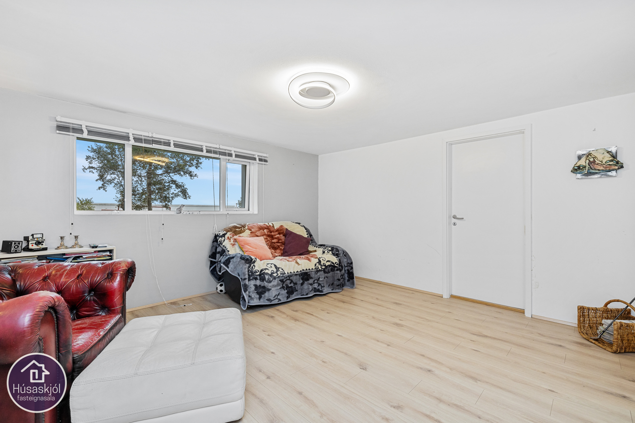 Bílskúr var stúdíóíbúð og allar lagnir til staðar til að breyta aftur. Undir bílskúr er geymsla sem er ca 1,80 m á hæð og með sérinngangi.